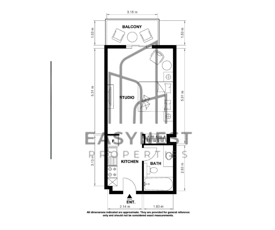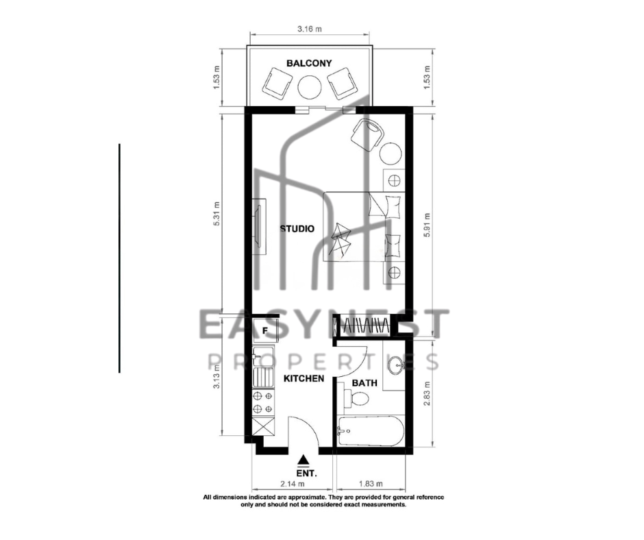 Bright and spacious studio layout